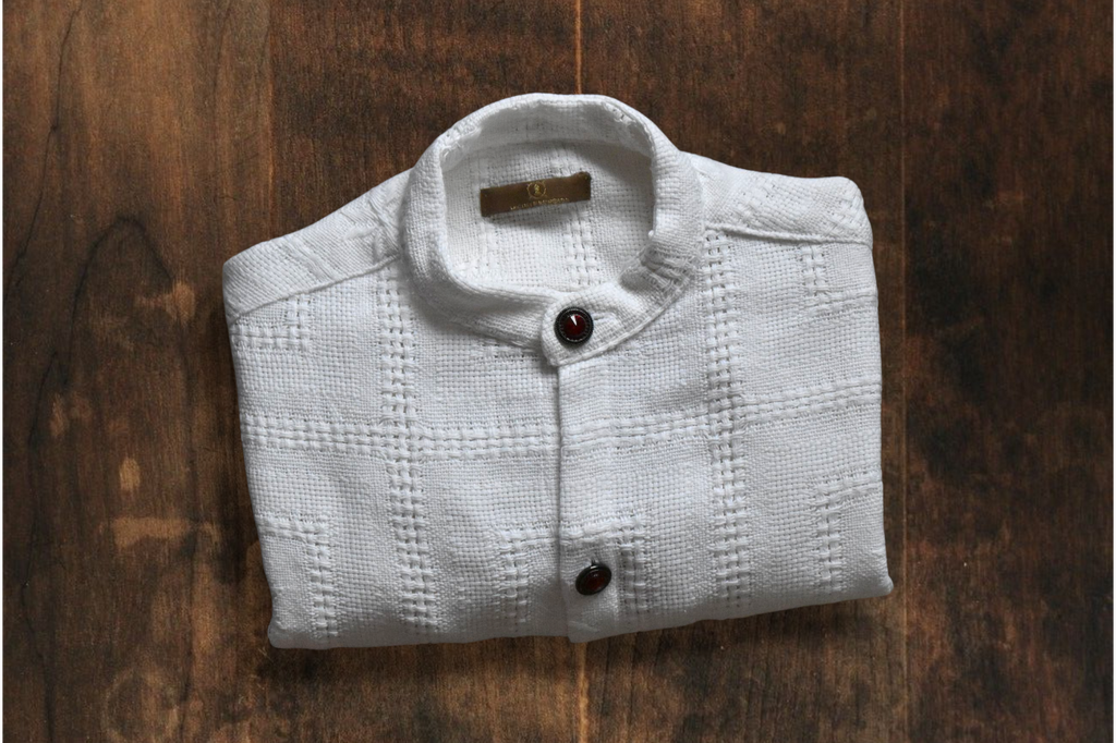 ワンピース - 手作りDomenicaは、1970年代のテーブルクロスをリサイクルして誕生しました。エレガントでラグジュアリー、そして贅を尽くした、まさに着られるアート作品です。冬の装いにぴったりの厚手のコットン素材を使用し、マンダリンカラー、赤いジルコニアをあしらったヴィンテージブロンズボタン、そしてオリジナルの生地のトリムが特徴です。まさに、純粋なエレガンス。